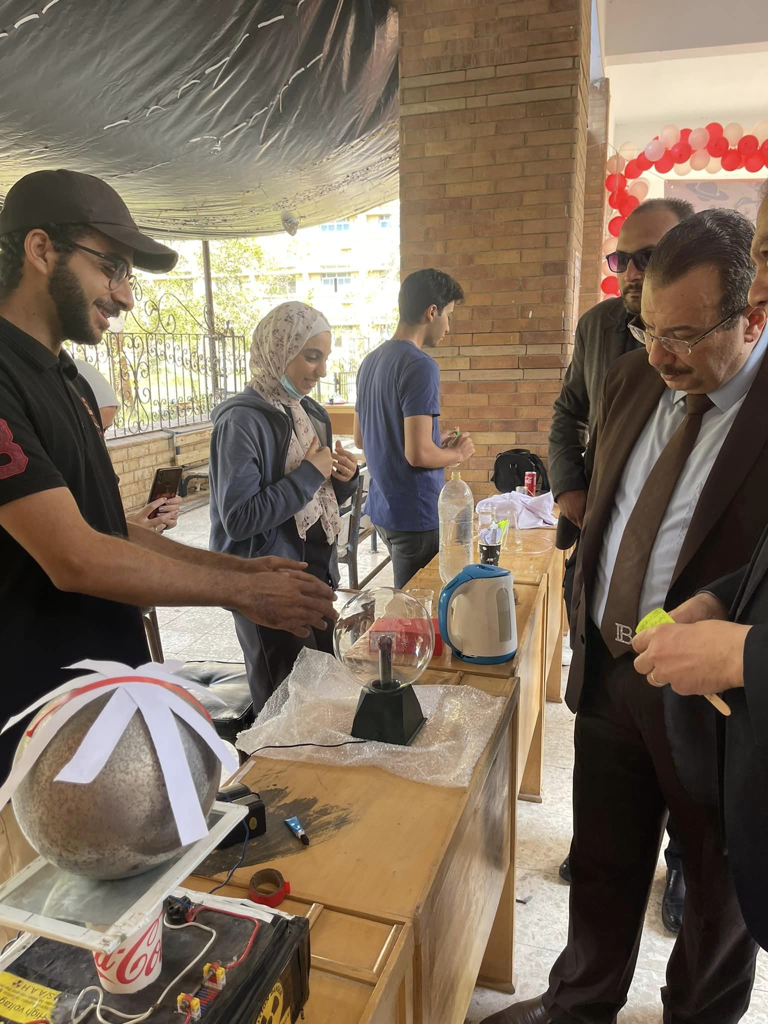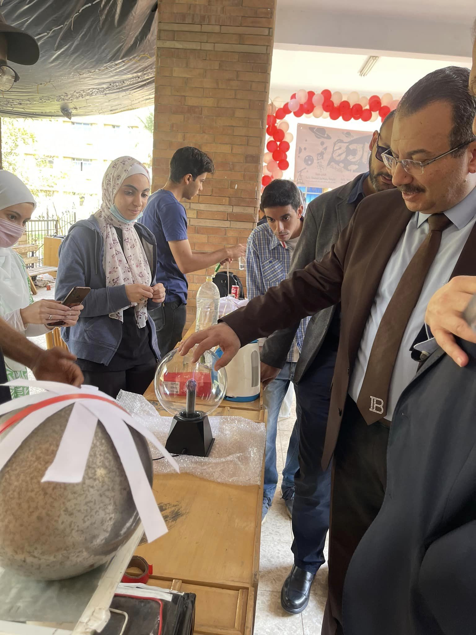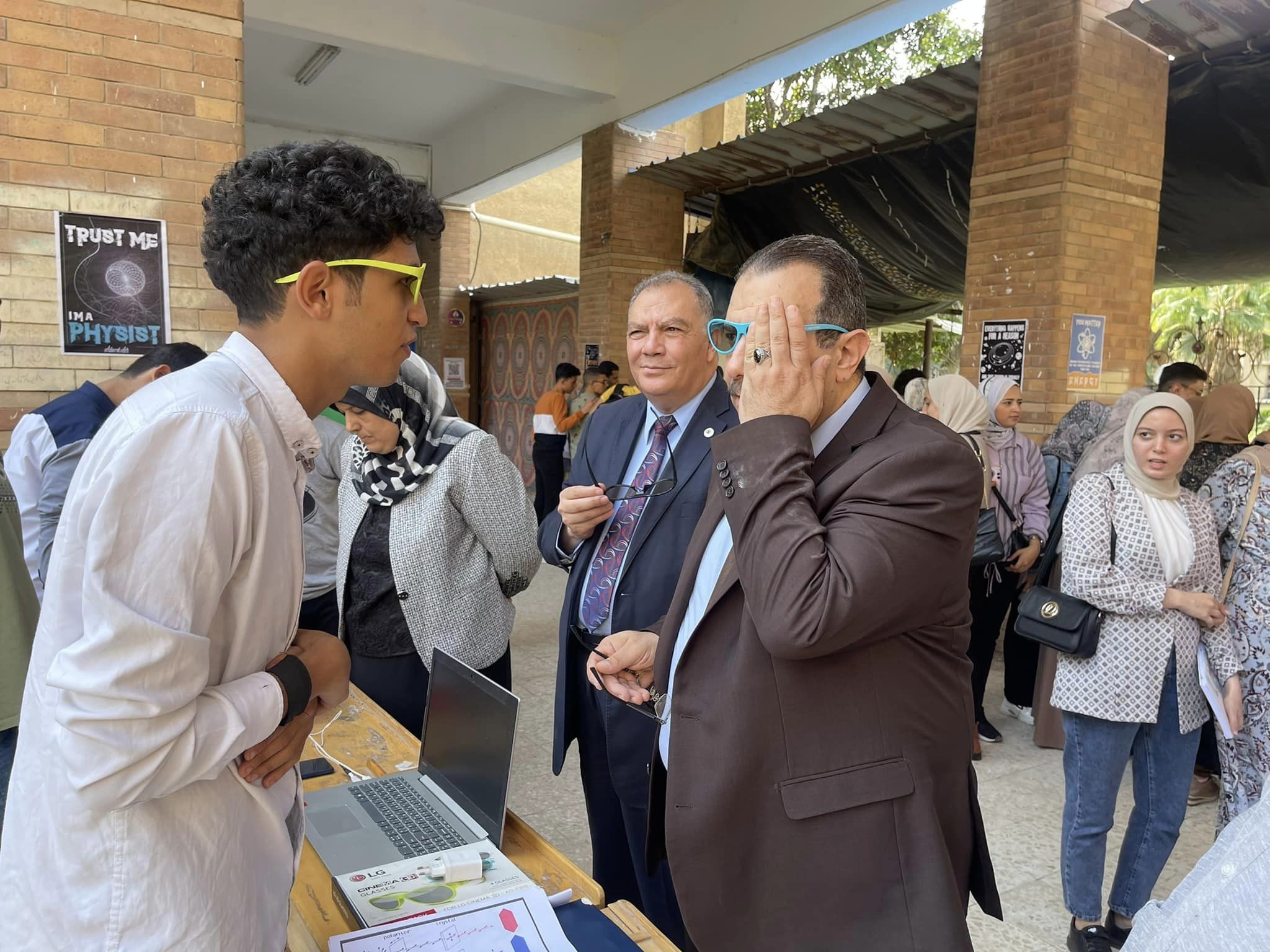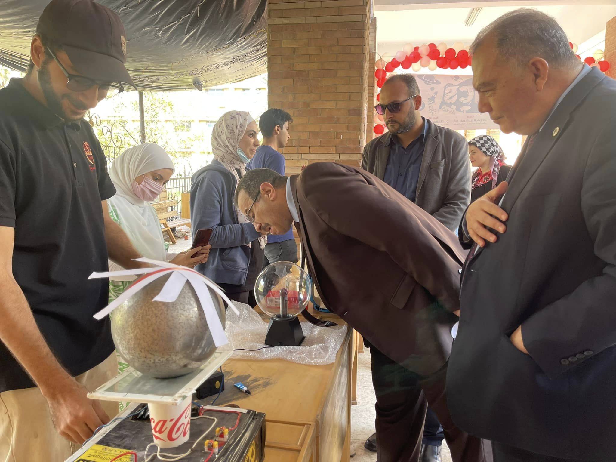 افتتح اليوم الثلاثاء الموافق ١ نوفمبر ٢٠٢٢ السيد أ. د/ أسامه العيان عميد الكليه والسيد أ.د/ أحمد المحمودى وكيل الكليه لشئون التعليم والطلاب يرافقه السيد أ.د/ عادل صادق رئيس قسم الفيزياء والسيده أ.د/ عفاف معوض أستاذ بقسم الفيزياء معرض الفيزياء الاول تحت عنوان (يوم الفيزياء Physics Day 2022) من ضمن فعاليات الانشطه اللامنهجية للكليه حيث تفقد سيادته المعرض وعددا من طلاب وطالبه الكلية بمختلف الاقسام حيث اوضحت الدكتورة / عفاف معوض المشرفة علي المعرض خلال الجوله بأن هذا المعرض خطوة أولى في تحقيق ما يسعى إليه قسم الفيزياء في تفعيل المقررات لتنمية مهارات الطلاب وقدراتهم. وانه تم تنفيذه بالكامل بسواعد ابناءنا الطلاب وقد تعددت الركنيات المقدمة في المعرض وقدمت العديد من التطبيقات الفيزيائية الممتعة ومدى تأثيرها علي المجتمع وقد أثنى الحضور علي إبداع الطلاب في تبسيط العلوم وانه نتاج عمل يحتاج إلى ذكاء وجهد عظيم ليخرج بهذه الصورة المشرفة وفى نهايه الجوله قدم عميد الكليه الشكر لكل الطلبه والطالبات المشاركين فى المعرض وتمنى سيادته لهم دوام التوفيق والنجاح .