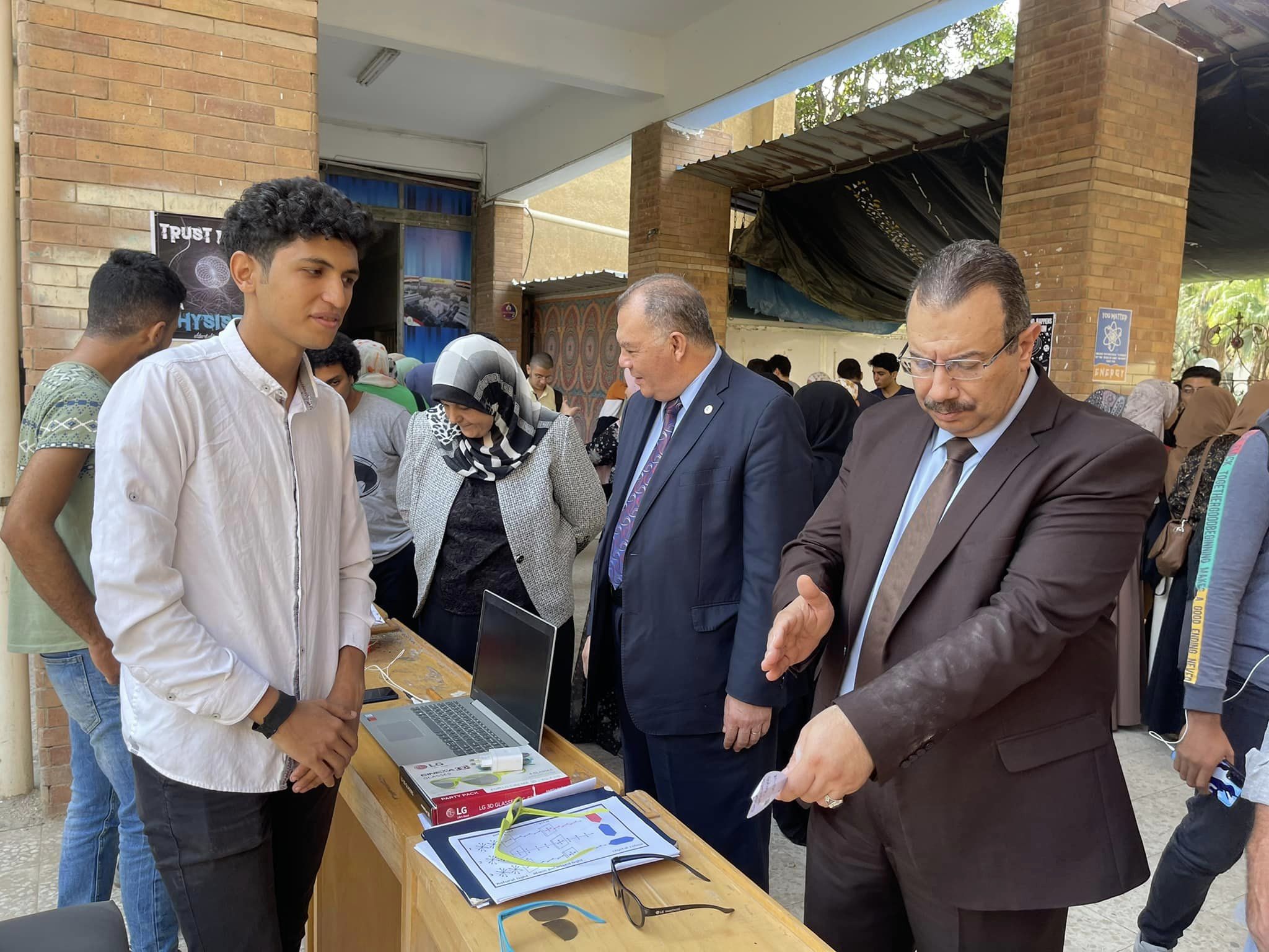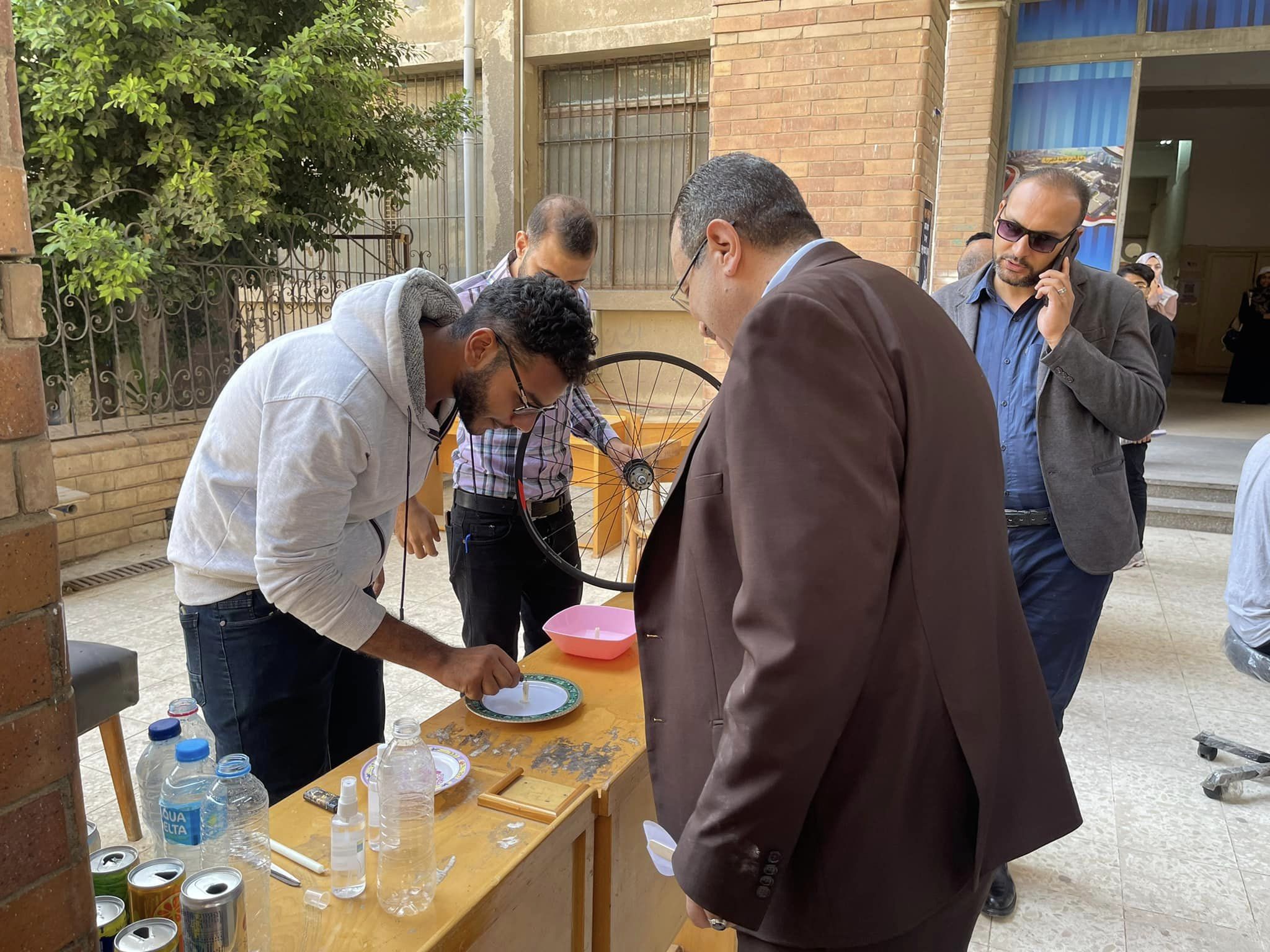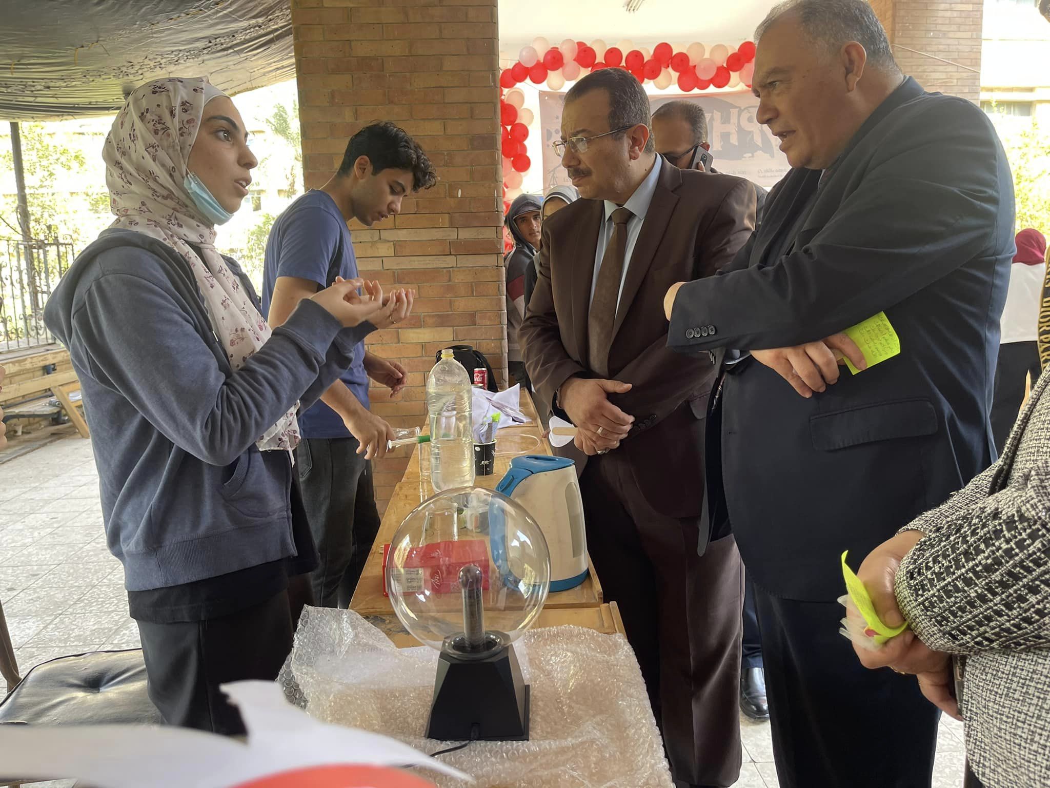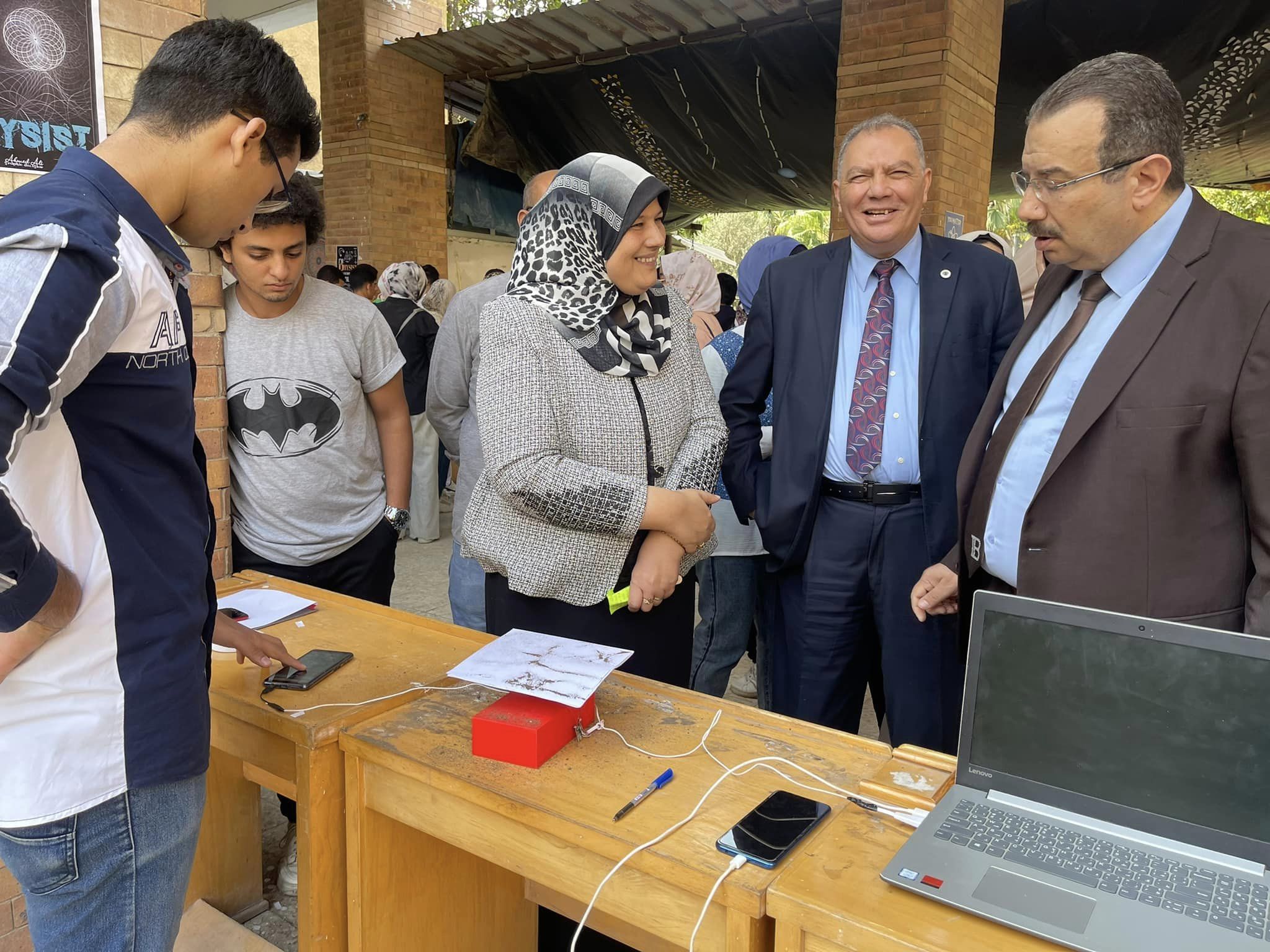 افتتح اليوم الثلاثاء الموافق ١ نوفمبر ٢٠٢٢ السيد أ. د/ أسامه العيان عميد الكليه والسيد أ.د/ أحمد المحمودى وكيل الكليه لشئون التعليم والطلاب يرافقه السيد أ.د/ عادل صادق رئيس قسم الفيزياء والسيده أ.د/ عفاف معوض أستاذ بقسم الفيزياء معرض الفيزياء الاول تحت عنوان (يوم الفيزياء Physics Day 2022) من ضمن فعاليات الانشطه اللامنهجية للكليه حيث تفقد سيادته المعرض وعددا من طلاب وطالبه الكلية بمختلف الاقسام حيث اوضحت الدكتورة / عفاف معوض المشرفة علي المعرض خلال الجوله بأن هذا المعرض خطوة أولى في تحقيق ما يسعى إليه قسم الفيزياء في تفعيل المقررات لتنمية مهارات الطلاب وقدراتهم. وانه تم تنفيذه بالكامل بسواعد ابناءنا الطلاب وقد تعددت الركنيات المقدمة في المعرض وقدمت العديد من التطبيقات الفيزيائية الممتعة ومدى تأثيرها علي المجتمع وقد أثنى الحضور علي إبداع الطلاب في تبسيط العلوم وانه نتاج عمل يحتاج إلى ذكاء وجهد عظيم ليخرج بهذه الصورة المشرفة وفى نهايه الجوله قدم عميد الكليه الشكر لكل الطلبه والطالبات المشاركين فى المعرض وتمنى سيادته لهم دوام التوفيق والنجاح .