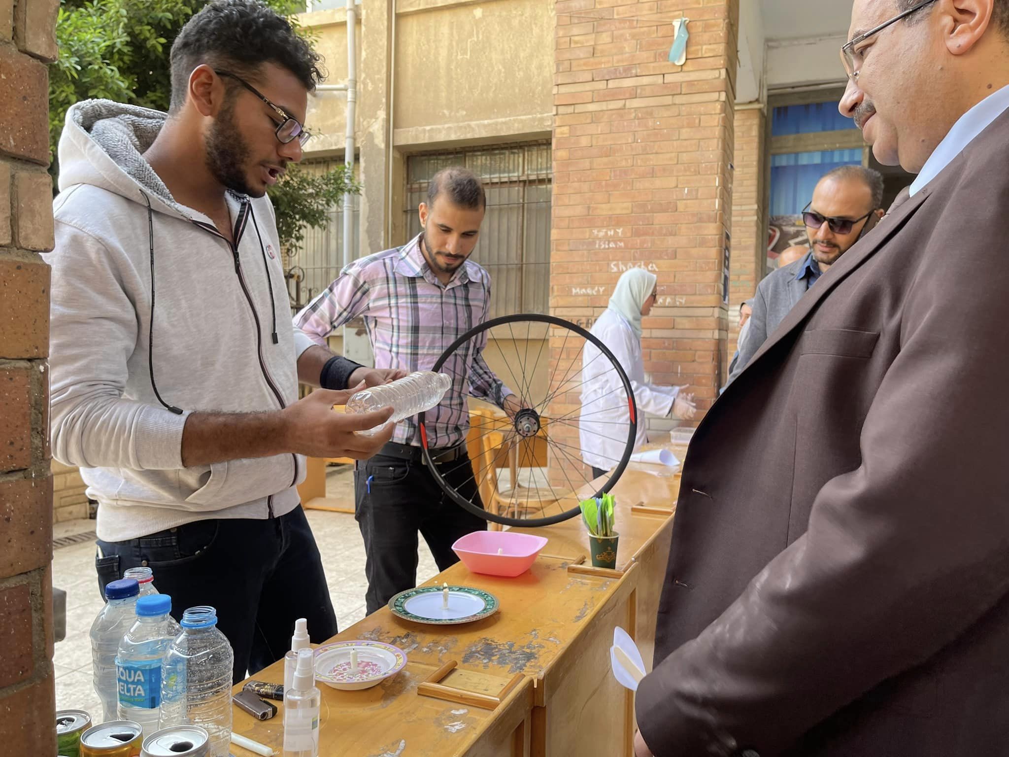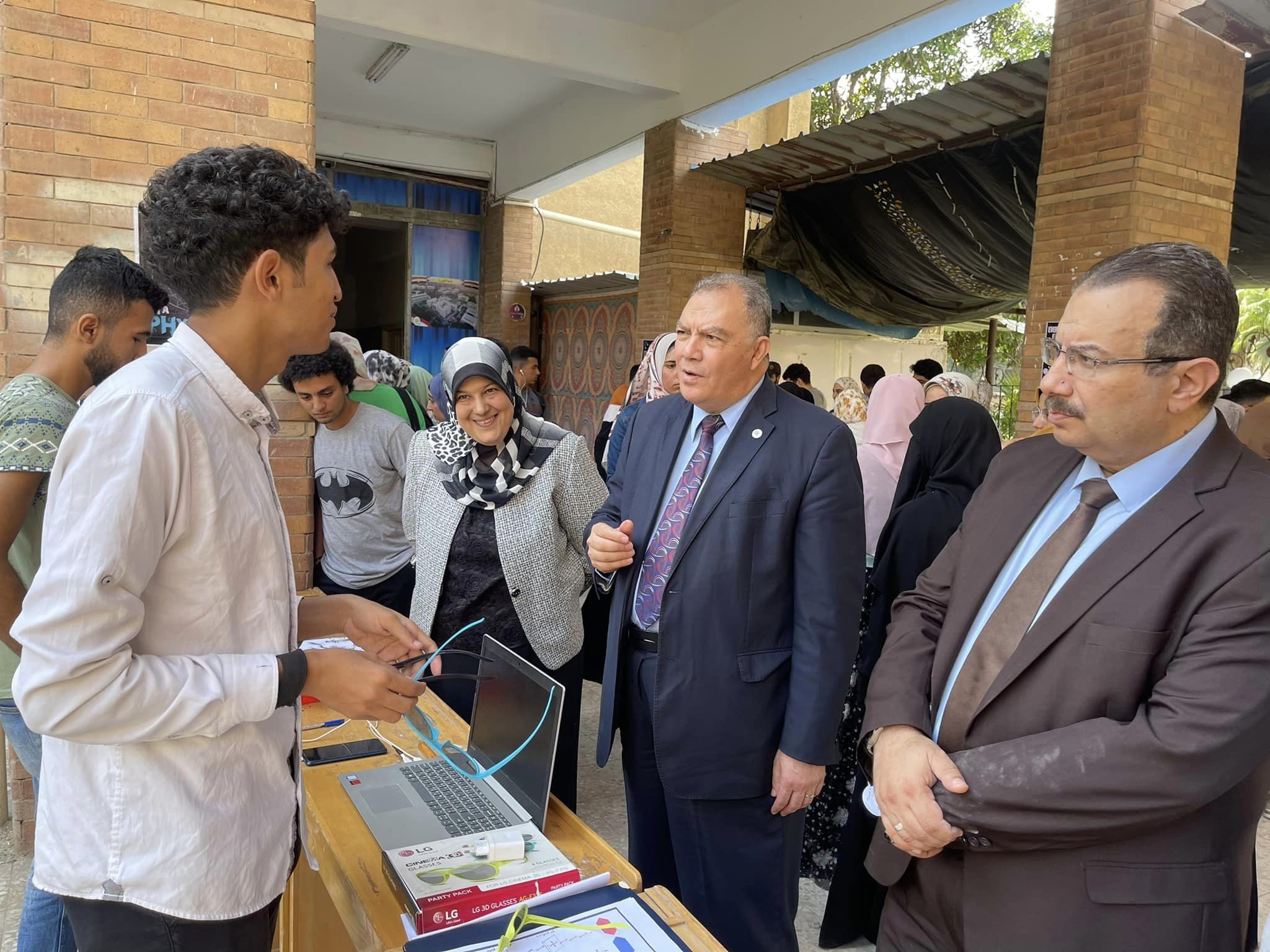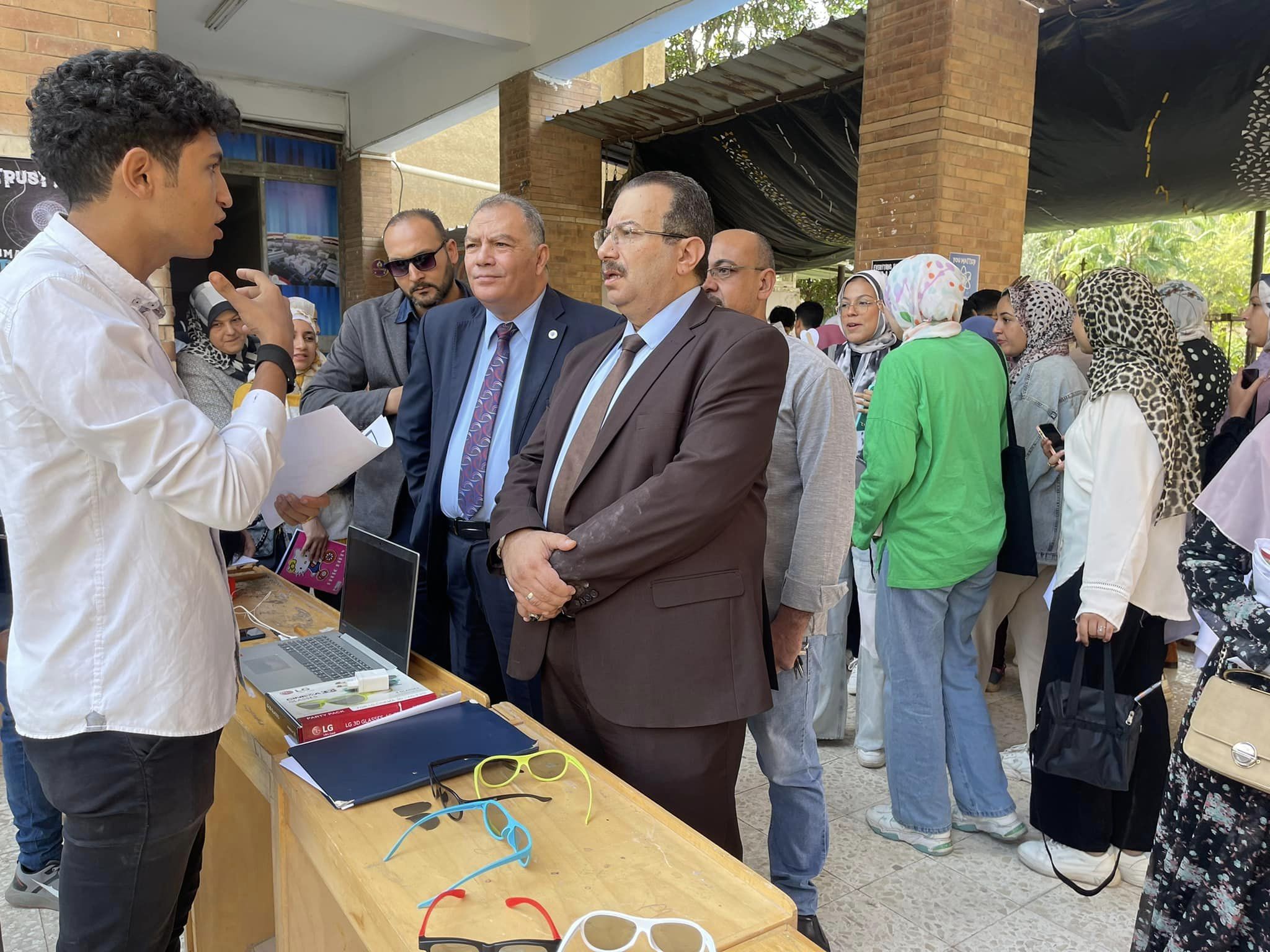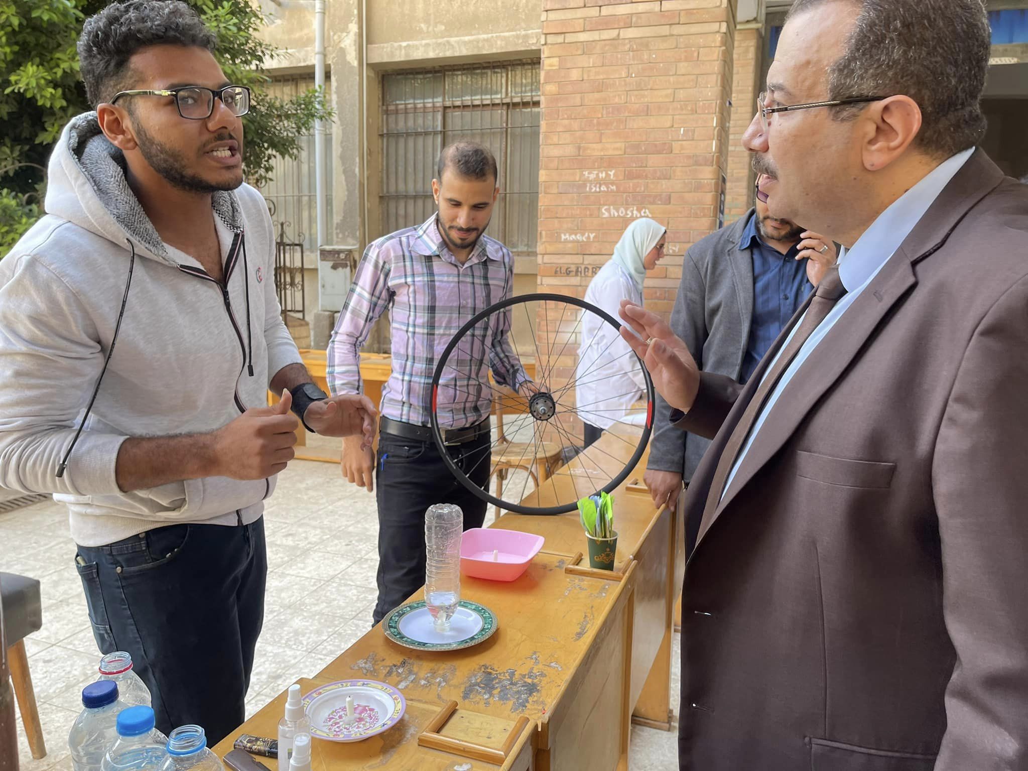 افتتح اليوم الثلاثاء الموافق ١ نوفمبر ٢٠٢٢ السيد أ. د/ أسامه العيان عميد الكليه والسيد أ.د/ أحمد المحمودى وكيل الكليه لشئون التعليم والطلاب يرافقه السيد أ.د/ عادل صادق رئيس قسم الفيزياء والسيده أ.د/ عفاف معوض أستاذ بقسم الفيزياء معرض الفيزياء الاول تحت عنوان (يوم الفيزياء Physics Day 2022) من ضمن فعاليات الانشطه اللامنهجية للكليه حيث تفقد سيادته المعرض وعددا من طلاب وطالبه الكلية بمختلف الاقسام حيث اوضحت الدكتورة / عفاف معوض المشرفة علي المعرض خلال الجوله بأن هذا المعرض خطوة أولى في تحقيق ما يسعى إليه قسم الفيزياء في تفعيل المقررات لتنمية مهارات الطلاب وقدراتهم. وانه تم تنفيذه بالكامل بسواعد ابناءنا الطلاب وقد تعددت الركنيات المقدمة في المعرض وقدمت العديد من التطبيقات الفيزيائية الممتعة ومدى تأثيرها علي المجتمع وقد أثنى الحضور علي إبداع الطلاب في تبسيط العلوم وانه نتاج عمل يحتاج إلى ذكاء وجهد عظيم ليخرج بهذه الصورة المشرفة وفى نهايه الجوله قدم عميد الكليه الشكر لكل الطلبه والطالبات المشاركين فى المعرض وتمنى سيادته لهم دوام التوفيق والنجاح .