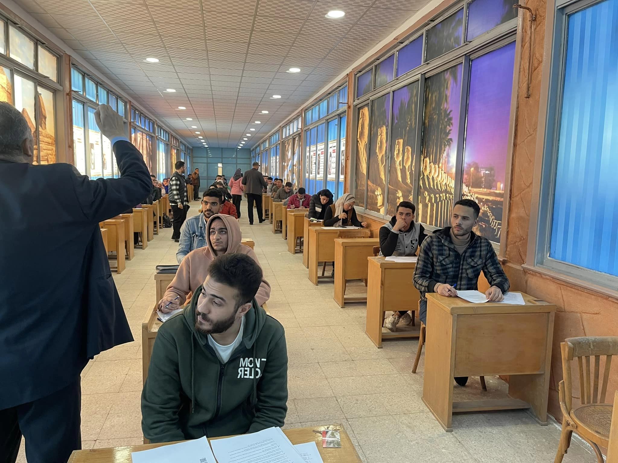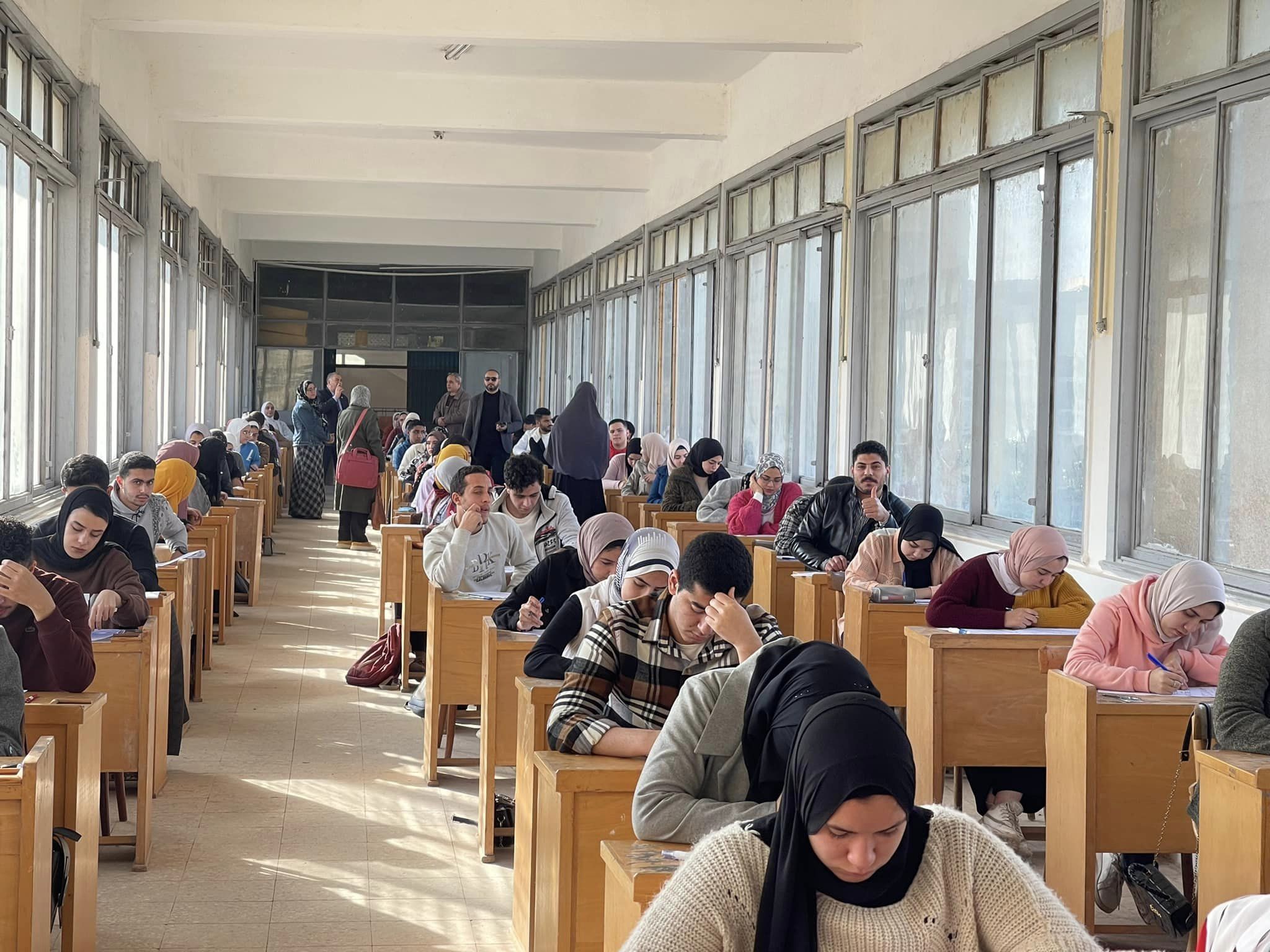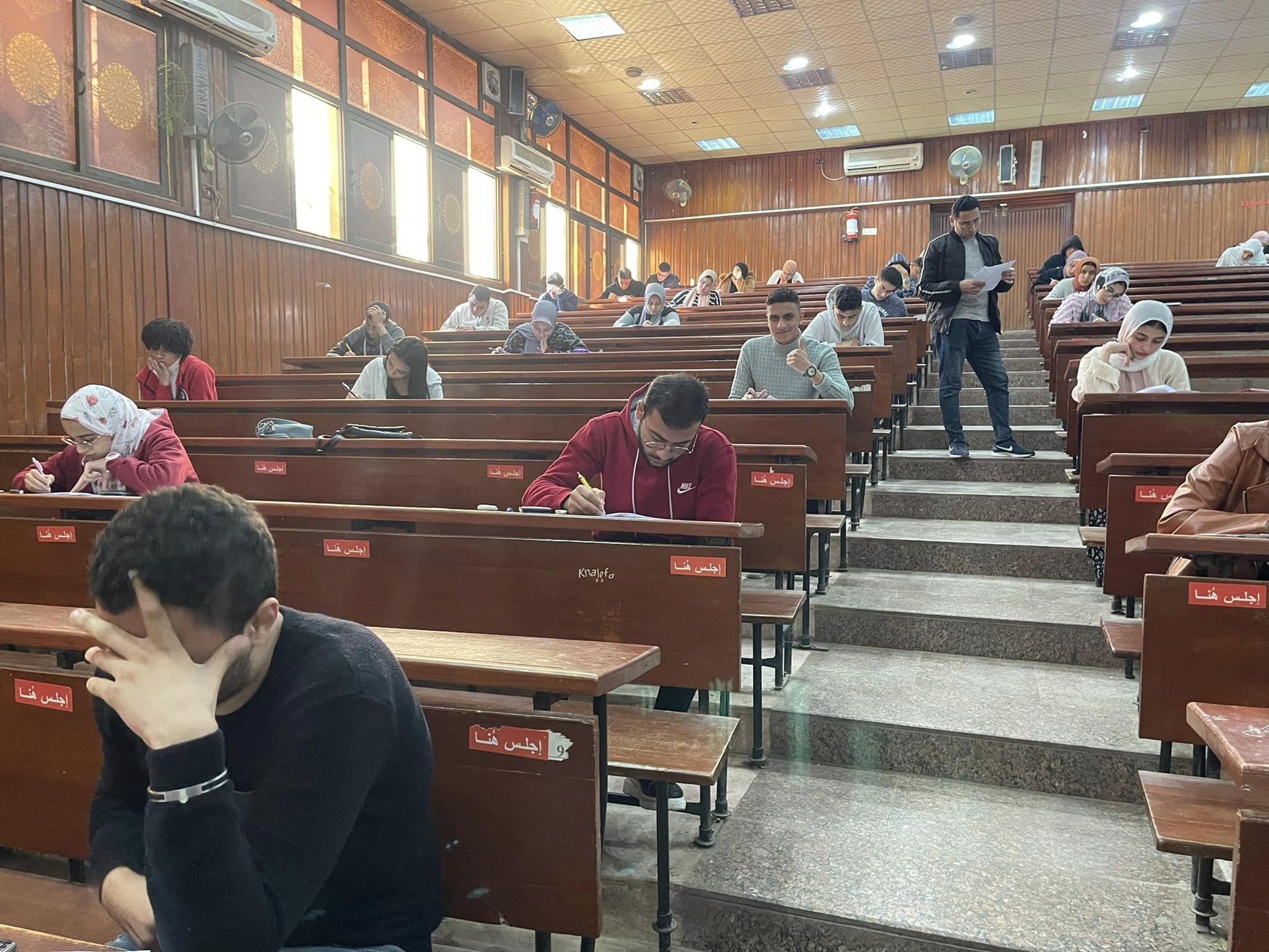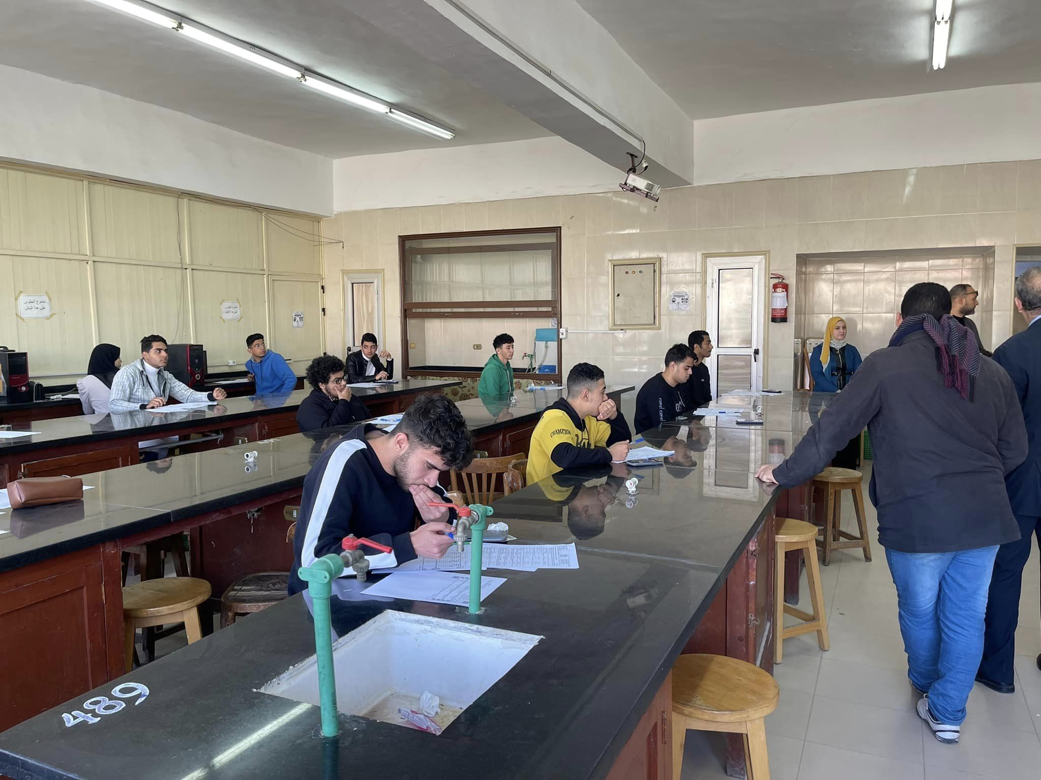 تفقد السيد أ.د/ أسامه العيان عميد الكلية يرافقه السيد أ.د / أحمد المحمودى وكيل الكلية لشئون التعليم والطلاب اليوم السبت الموافق 31 ديسمبر 2022 سير أول يوم من إمتحانات النهائى للفصل الدراسى الأول بالكلية للعام الجامعى ٢٠٢٢ / ٢٠٢٣ والتى ستستمر حتى الأربعاء الموافق 25 يناير 2023 حيث تفقدوا سيادتهم العمل بالكنترول المركزى والكنترولات الفرعية ومركز التصوير وغرفة التصحيح الإليكترونى بالكلية وكذلك سير عملية الإمتحانات وإنتظامها بلجان الامتحانات والتأكد من تنفيذ كافة التعليمات الصادره من إداره الكلية بشأن قواعد الإمتحانات كما اكد أ.د/ أحمد المحمودى على ضروره الالتزام بتنفيذ التعليمات الخاصه والقواعد المنظمة لها وأكد سيادته وقام بالتنبيه بأنه ووفقا لقواعد الإمتحانات فإنه يمنع عدم إصحاب التليفون المحمول نهائيا داخل اللجان الإمتحانية .
