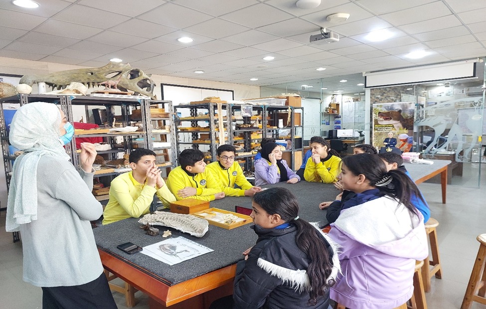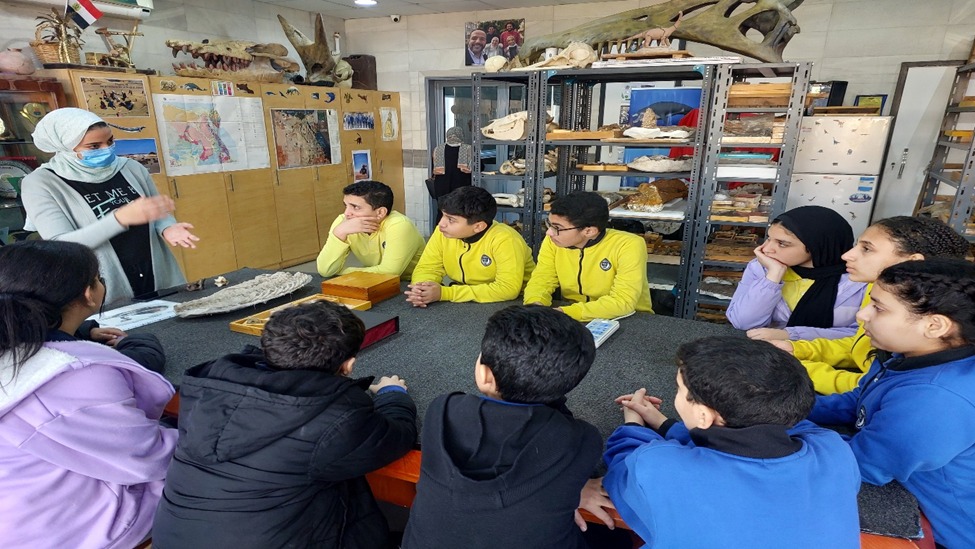 تحت رعاية السيد الأستاذ الدكتور/ شريف يوسف خاطر رئيس جامعة المنصورة وريادة السيد الأستاذ الدكتور/ محمد عبد العظيم نائب رئيس الجامعة لشئون خدمة المجتمع وتنمية البيئة وريادة سعادة الأستاذ الدكتور/ ايهاب عبد اللطيف عطية قائم بعمل عميد الكلية وإشراف سعادة الأستاذ الدكتور/ محمد فتحى ابو النور وكيل الكلية لشئون خدمة المجتمع وتنمية البيئة استقبل قطاع شئون خدمة المجتمع وتنمية البيئة يوم الخميس الموافق 5 مارس 2026 واحد من أنشطة مديرية التربية والتعليم بالدقهلية للزيارات المدرسية خلال الفصل الدراسى الثاني للعام الدراسى 2025 / 2026 بزيارة من مدرسة "نوبلز الدولية للغات "تم استهلال الزيارة باستضافة وفد المدرسة من السادة المشرفين أ. أحمد هشام مدرس العلوم – و أ. سارة هاني مدرسة العلوم و أ. رنا ابراهيم وومجموعة من الطلاب والطالبات بمكتب السيد أ.د/ وكيل الكلية لشئون خدمة المجتمع بالكلية حيث قام سيادته بإلقاء كلمة ترحيب بالوفد والطلاب المشاركين فى الزيارة وأستعرض سيادته دور كلية العلوم واسهاماتها فى النهضة العلمية والبحثية وخدمة المجتمع وتنميته وحث الطلاب على الاجتهاد والمثابرة والتعلم لخدمة وطنهم العزيز مصر . وباشر الوفد زيارته للكلية الي قسم الجيولوجيا بصحبة الدكتورة/ سمر حمدي الي المتحف الجيولوجي حيث قدمت لهم محاضرة عن أنواع الاحجار الكريمة وطريقة استخراجها وكيفية حفظها تلاها زيارة الوفد الى مركز المنصورة للحفريات الفقارية حيث قامت بالشرح لهم الباحثة / ندى الغرباوي عن اهم الاكتشافات فيه.