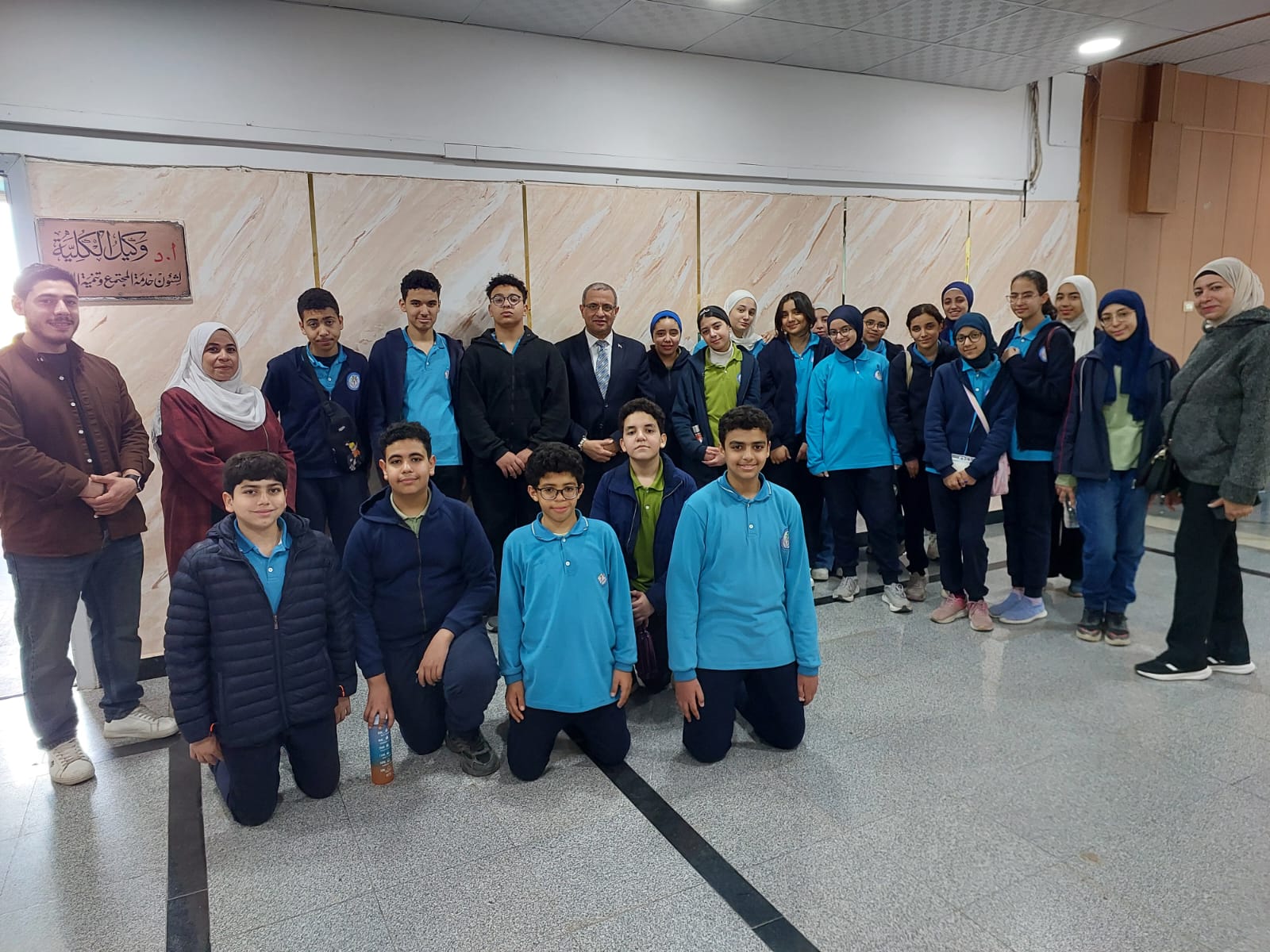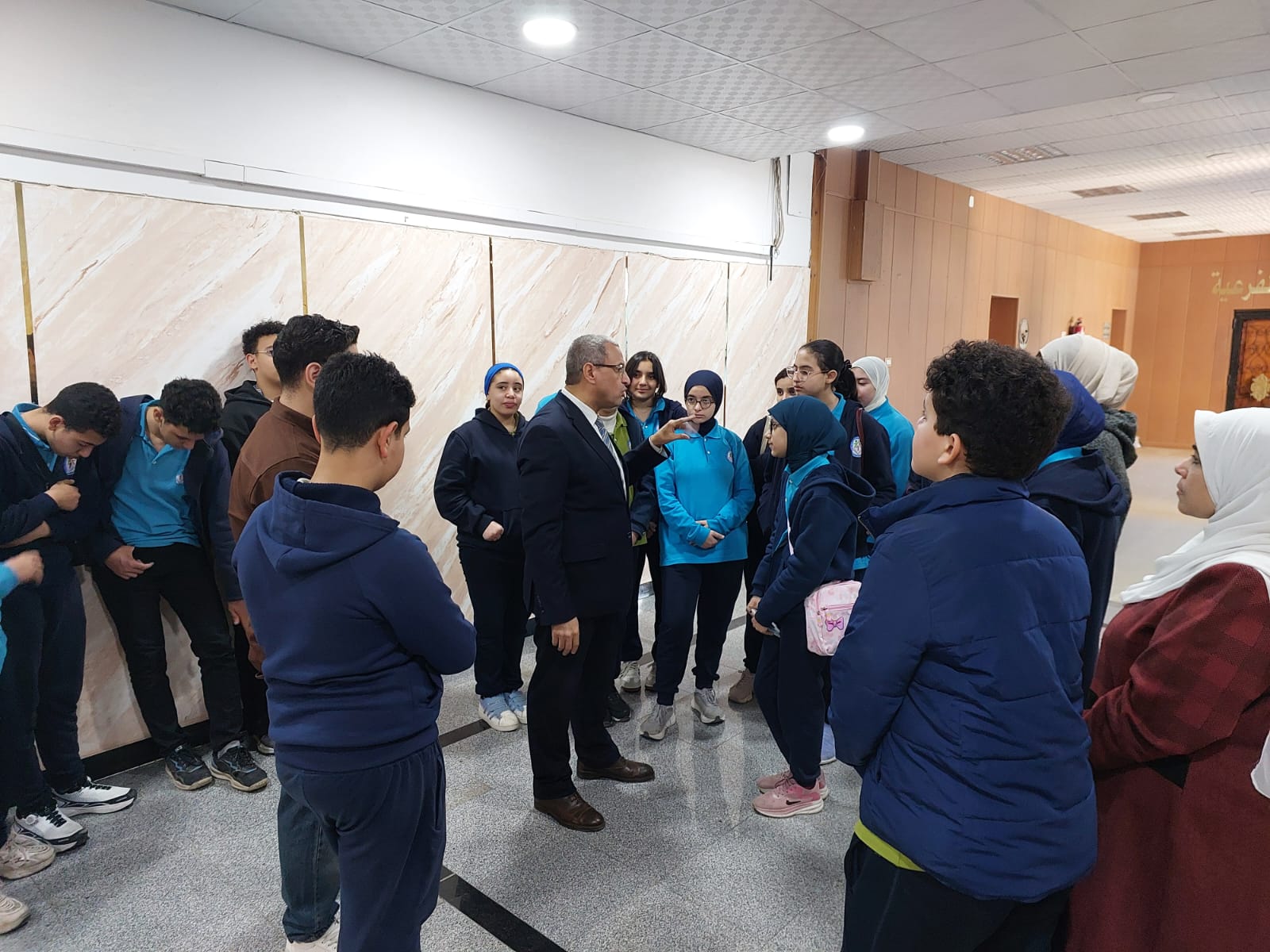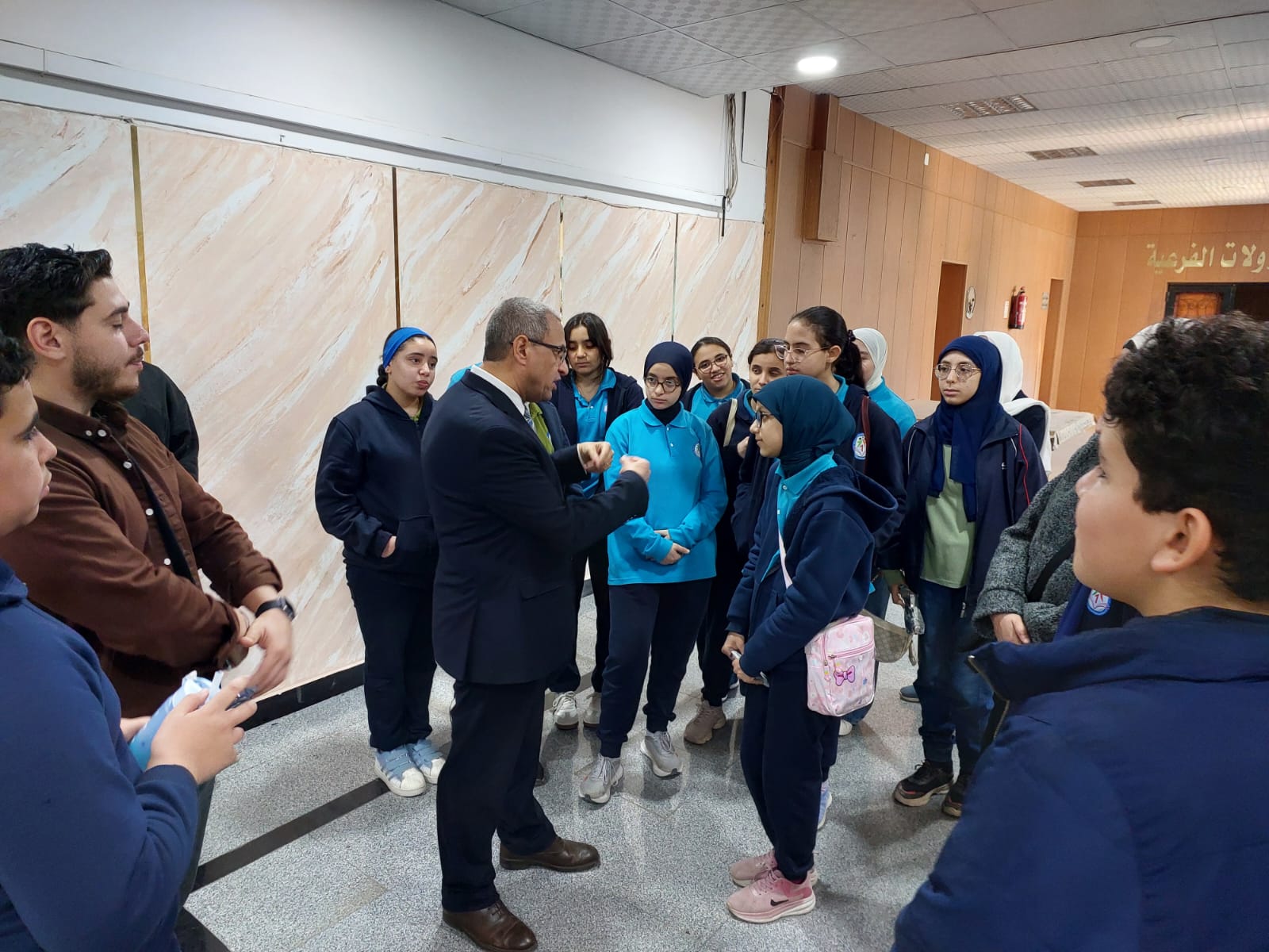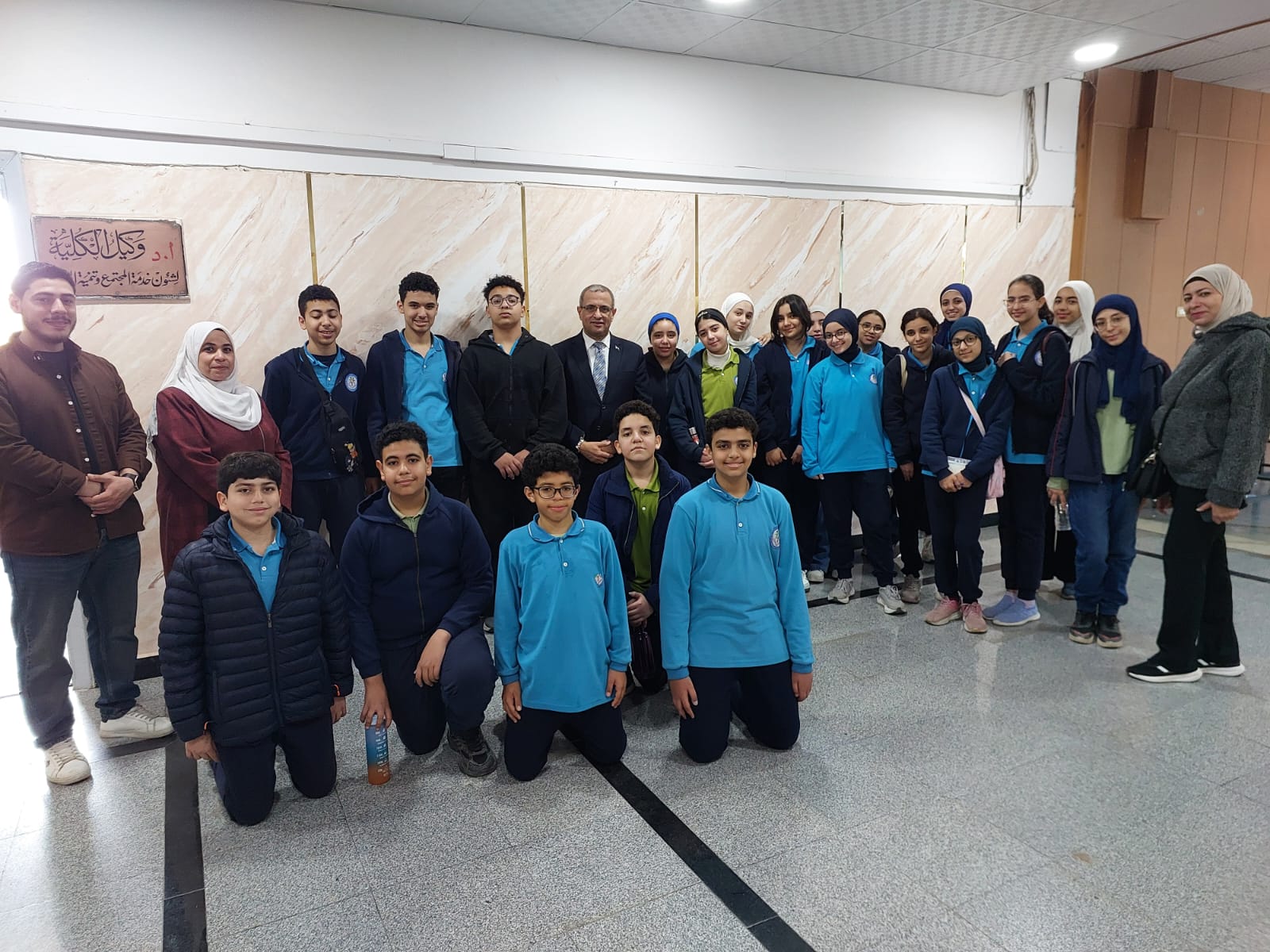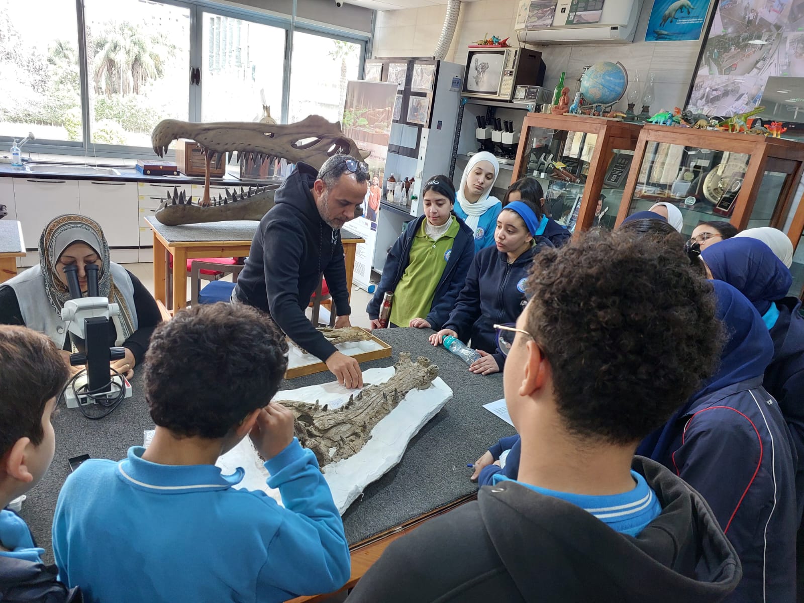تحت رعاية السيد الأستاذ الدكتور/ شريف خاطر رئيس جامعة المنصورة وريادة السيد الأستاذ الدكتور / طارق غلوش المشرف علي قطاع شئون خدمة المجتمع وتنمية البيئة وريادة سعادة الأستاذ الدكتور/ ايهاب عبد اللطيف عطية قائم بعمل عميد الكلية وإشراف سعادة الأستاذ الدكتور/ محمد فتحى ابو النور وكيل الكلية لشئون خدمة المجتمع وتنمية البيئة استقبل قطاع شئون خدمة المجتمع وتنمية البيئة يوم الأربعاء الموافق 8 ابريل 2026 واحدة من أنشطة مديرية التربية والتعليم بالدقهلية للزيارات المدرسية خلال الفصل الدراسى الثاني للعام الدراسى 2025 / 2026 بزيارة من مدرسة " المنصورة المتميزة (1 ) للغات "تم استهلال الزيارة باستضافة وفد المدرسة من السادة المشرفين أ. نسرين بدوي الجبالي لخصائي اجتماعي و أ. دعاء السيد أحمد معلم العلوم و أ. أحمد أسامة أحمد معلم التربية الرياضية بمكتب السيد أ.د/ وكيل الكلية لشئون البيئة حيث قام سيادته بإلقاء كلمة ترحيب بالوفد والطلاب المشاركين فى الزيارة وأستعرض سيادته أهمية كلية العلوم ودورها فى نهضة المجتمع وتنميته وان لدى كلية العلوم علماء من أعضاء هيئة التدريس من بين الأكثر تأثيرا فى العالم وان هناك العديد من خريجى كلية العلوم قد حصلوا على جوائز نوبل فى العلوم المختلفة وحث الطلاب على الاجتهاد والمثابرة وباشر الوفد زيارته للكلية الي قسم علم الحيوان بصحبة الدكتور / مصطفى داود المدرس بقسم علم الحيوان وجولة علي بانوراما ومتاحف القسم ثم الي مركز المنصورة للحفريات الفقارية حيث استضاف الوفد السيد أ.د/ هشام سلام مؤسس المركز في جولة عبر الازمنة المختلفة من بداية القشرة الارضية ومراحل تطور الحيوانات المنقرضة من الديناصورات وخلافها وأماكن تواجد حفرياتها في الوحات المختلفة في مصر واستعرض اهم الاكتشافات فيه ثم عقبها محاضرة للباحث حسام السقا وأجدد الاكتشافات بالمركز