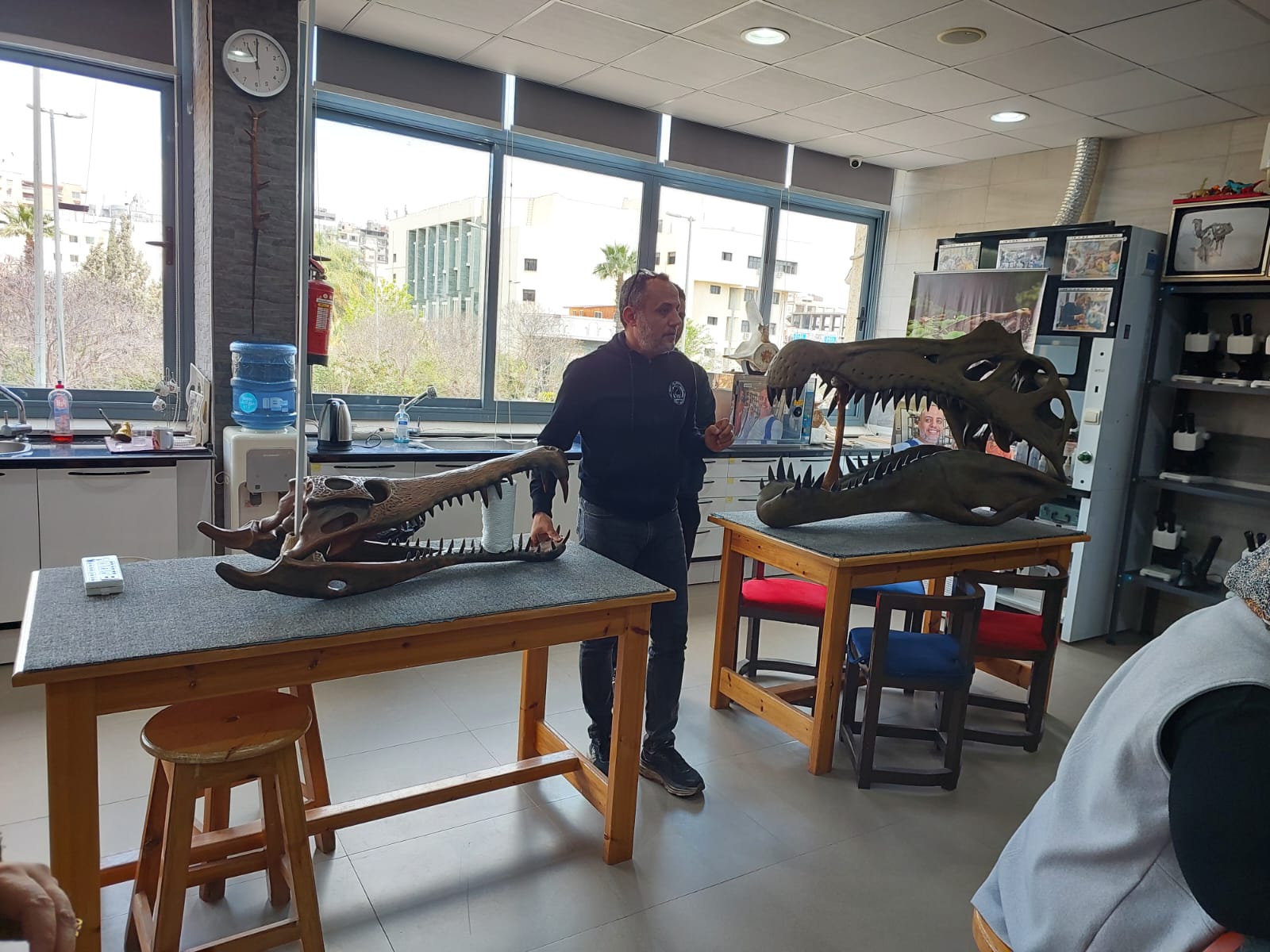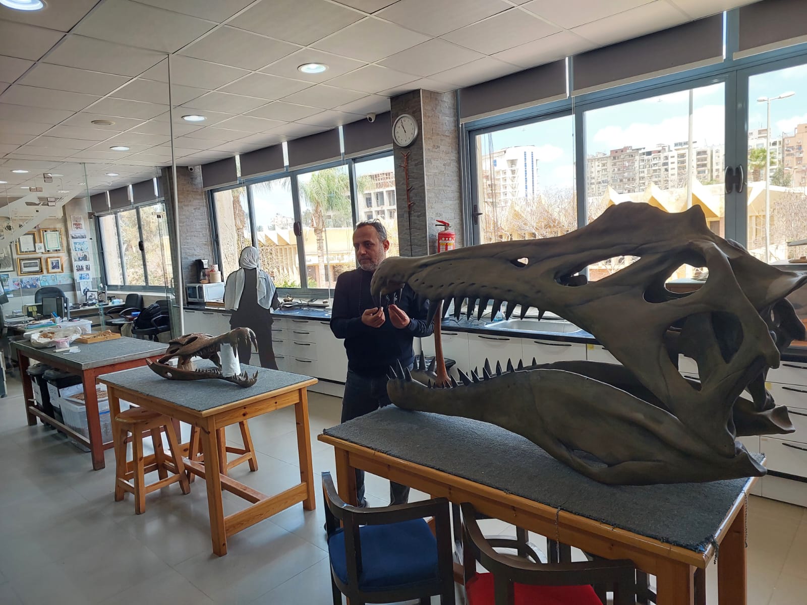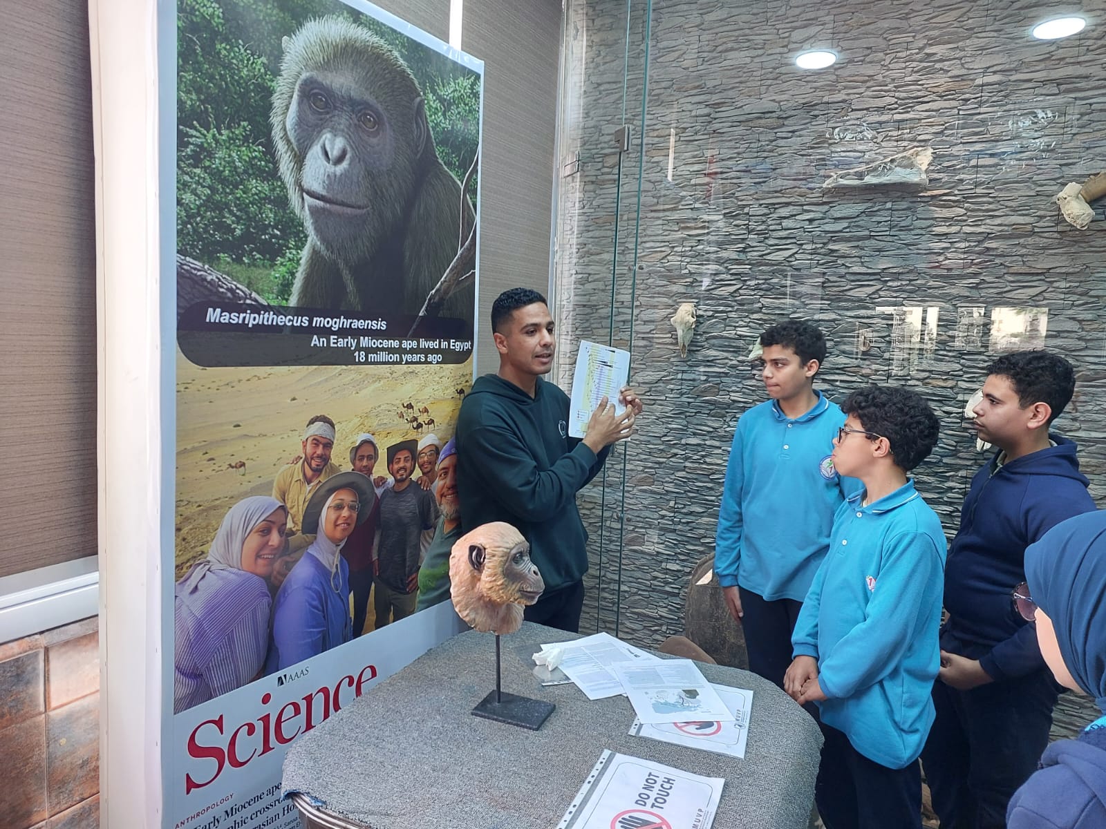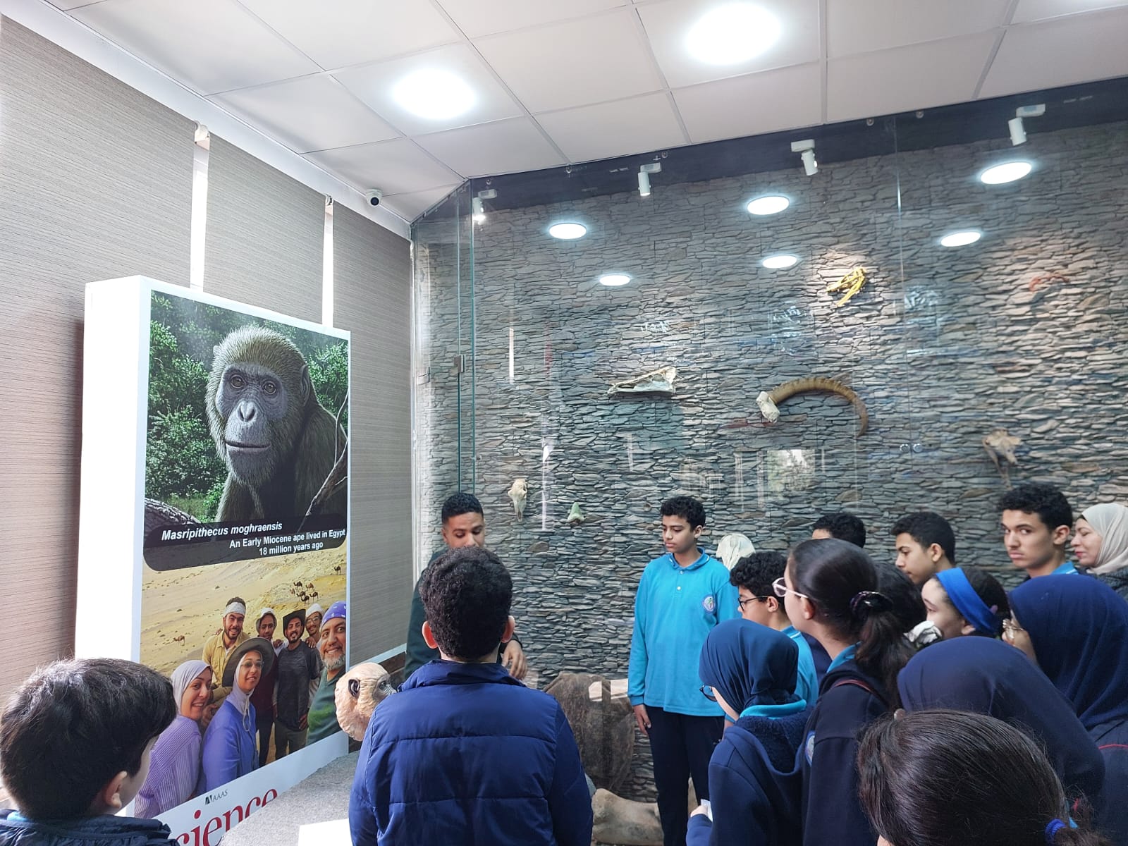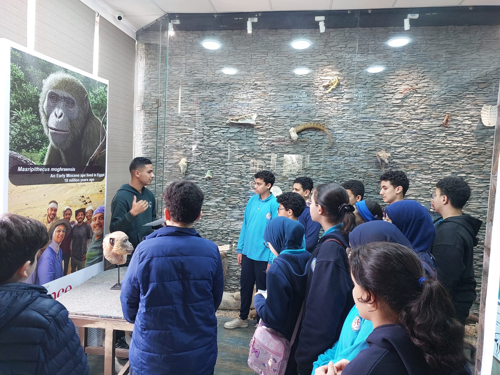 تحت رعاية السيد الأستاذ الدكتور/ شريف خاطر رئيس جامعة المنصورة وريادة السيد الأستاذ الدكتور / طارق غلوش المشرف علي قطاع شئون خدمة المجتمع وتنمية البيئة وريادة سعادة الأستاذ الدكتور/ ايهاب عبد اللطيف عطية قائم بعمل عميد الكلية وإشراف سعادة الأستاذ الدكتور/ محمد فتحى ابو النور وكيل الكلية لشئون خدمة المجتمع وتنمية البيئة استقبل قطاع شئون خدمة المجتمع وتنمية البيئة يوم الأربعاء الموافق 8 ابريل 2026 واحدة من أنشطة مديرية التربية والتعليم بالدقهلية للزيارات المدرسية خلال الفصل الدراسى الثاني للعام الدراسى 2025 / 2026 بزيارة من مدرسة " المنصورة المتميزة (1 ) للغات "تم استهلال الزيارة باستضافة وفد المدرسة من السادة المشرفين أ. نسرين بدوي الجبالي لخصائي اجتماعي و أ. دعاء السيد أحمد معلم العلوم و أ. أحمد أسامة أحمد معلم التربية الرياضية بمكتب السيد أ.د/ وكيل الكلية لشئون البيئة حيث قام سيادته بإلقاء كلمة ترحيب بالوفد والطلاب المشاركين فى الزيارة وأستعرض سيادته أهمية كلية العلوم ودورها فى نهضة المجتمع وتنميته وان لدى كلية العلوم علماء من أعضاء هيئة التدريس من بين الأكثر تأثيرا فى العالم وان هناك العديد من خريجى كلية العلوم قد حصلوا على جوائز نوبل فى العلوم المختلفة وحث الطلاب على الاجتهاد والمثابرة وباشر الوفد زيارته للكلية الي قسم علم الحيوان بصحبة الدكتور / مصطفى داود المدرس بقسم علم الحيوان وجولة علي بانوراما ومتاحف القسم ثم الي مركز المنصورة للحفريات الفقارية حيث استضاف الوفد السيد أ.د/ هشام سلام مؤسس المركز في جولة عبر الازمنة المختلفة من بداية القشرة الارضية ومراحل تطور الحيوانات المنقرضة من الديناصورات وخلافها وأماكن تواجد حفرياتها في الوحات المختلفة في مصر واستعرض اهم الاكتشافات فيه ثم عقبها محاضرة للباحث حسام السقا وأجدد الاكتشافات بالمركز