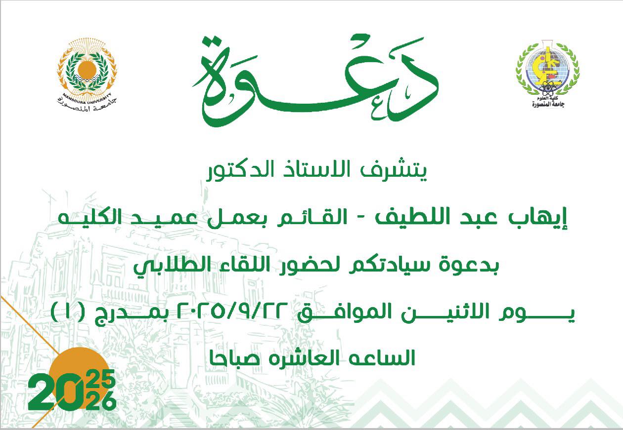 دعوة لحضور اللقاء التعريفي للطلاب الجدد