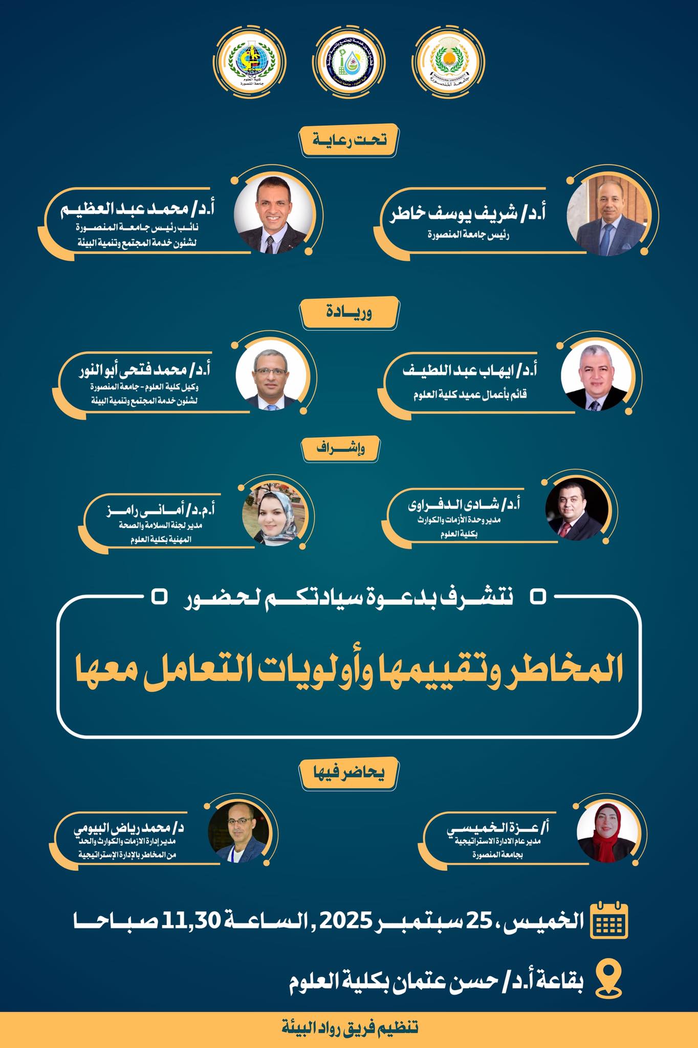 دعوة لحضو ورشة عمل بعنوان "المخاطر وتقييمها وأولويات التعامل معها"