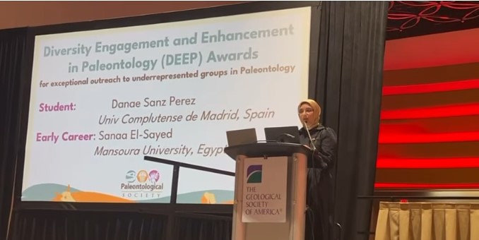 تهنئة د/ سناء السيد لحصولها على جائزة المشاركة وتعزيز التنوع في علم الأحافير (DEEP)