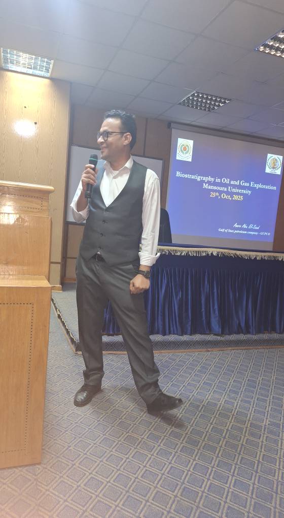 يتشرف برنامج جيولوجيا البترول والتعدين بإلقاء المحاضرة الثالثة اليوم الموافق السبت ٢٥أكتوبر ٢٠٢٥ وألقي المحاضرة المهندس / عمرو محمد فتحي أبو السعود_المهندس بشركة بترول خليج السويس (جابكو) بإلقاء المحاضرة الثالثة ، المحاضرة بعنوان "علم الطبقات الحيوية في استكشاف النفط والغاز