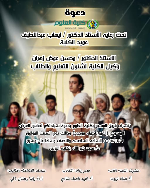 يتشرف فريق المسرح بكلية العلوم بدعوتكم لحضور العرض المسرحي