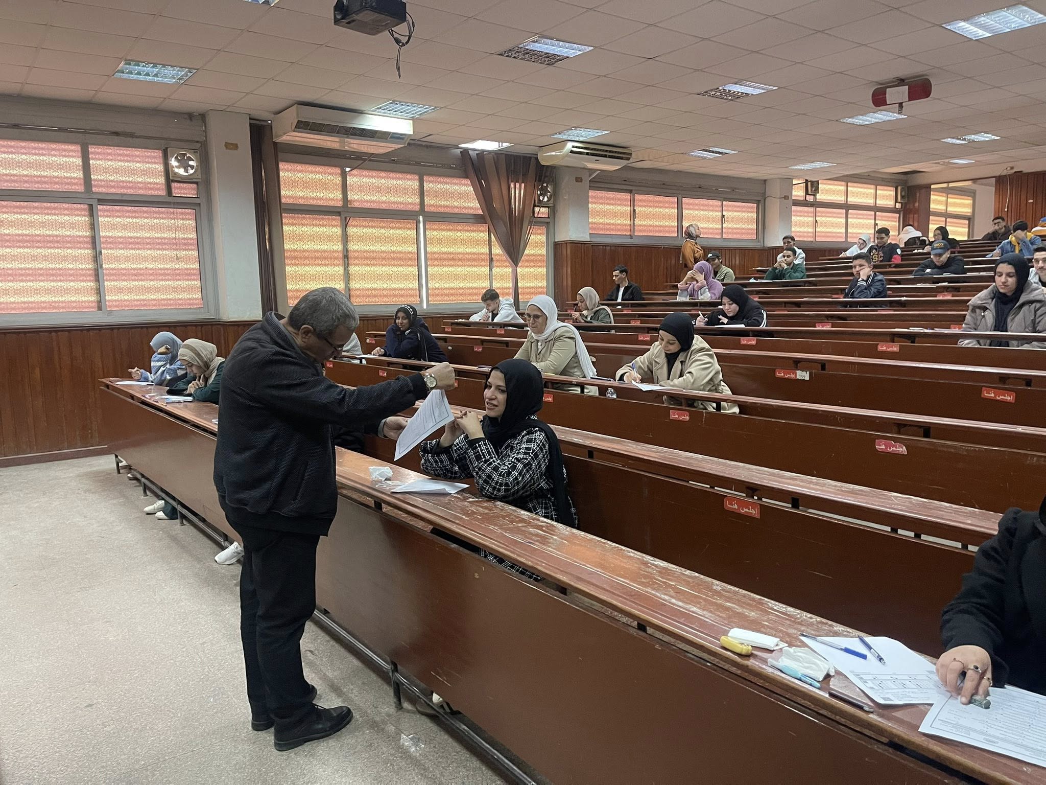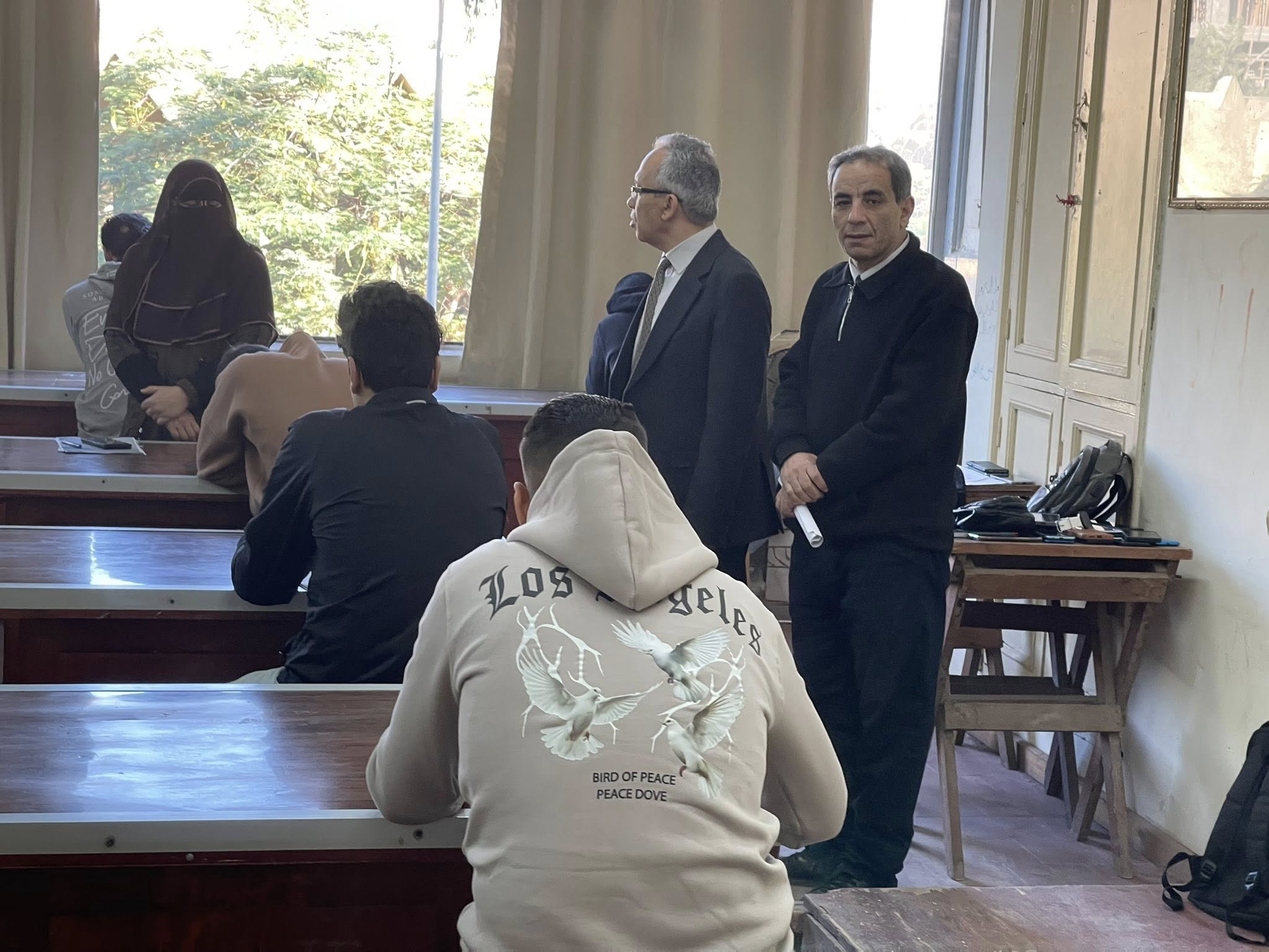 تفقد الأستاذ الدكتور /ايهاب عبد اللطيف - عميد الكليه اليوم الاربعاء الموافق 24 ديسمبر 2025 ، سير امتحانات الفصل الدراسي الأول للعام الجامعى (2025-2026 )بالكليه ، في إطار متابعة انتظام سير أعمال الامتحانات وفقا للخريطة الزمنية المُعتمدة من المجلس الأعلى للجامعات، والجداول المُعلنة بالكليات، ووسط إجراءات تنظيمية وإدارية لضمان حسن سير أعمال الامتحانات.