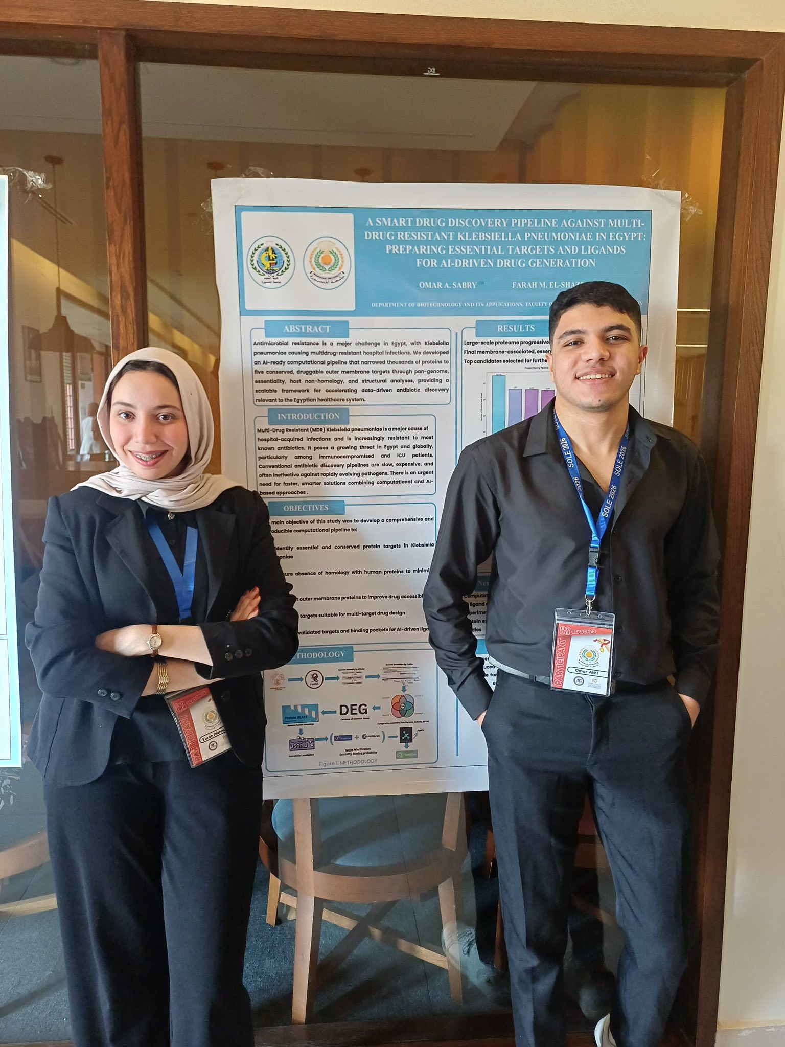 حقق الطالب عمر عاطف والطالبة فرح محمود المركز الثاني في منافسة المشاريع العلمية (Poster Session Round 2)، بعد تقديم بوستر بحثي متميز عكس مستوى علمي وبحثي مشرف لطلاب البرنامج.
